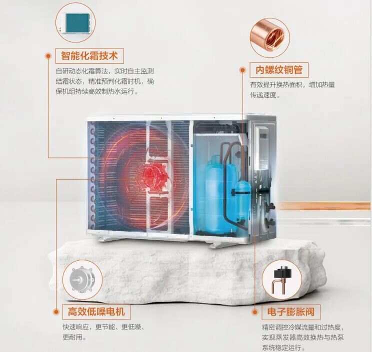 *制热量大38%指对比常规一级能效空气能300L水箱配主机名义制热量在5000W以上数据为理论计算数据,仅供参考,以实际使用为准。
