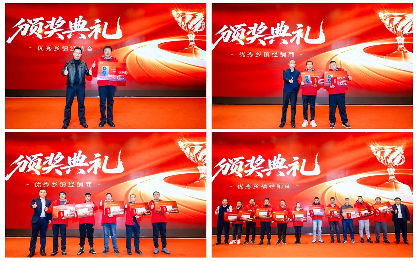 东北场会议还隆重举行了优秀乡镇经销商颁奖仪式,现场设立“荣耀巅峰奖”“钻石尖峰奖”“卓越攀登奖”“非凡能量奖”等多项重磅荣誉,对过去一年中表现突出的18位经销商予以表彰,同时树立先进榜样,激励全体经销商伙伴在新的一年里笃行不怠、再创新佳绩。
