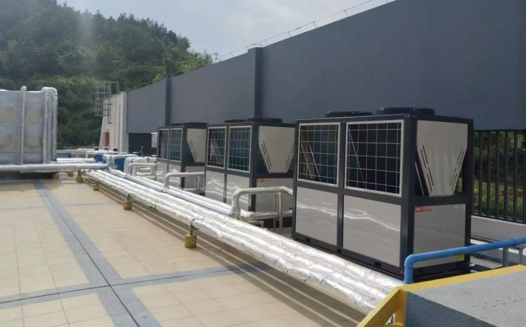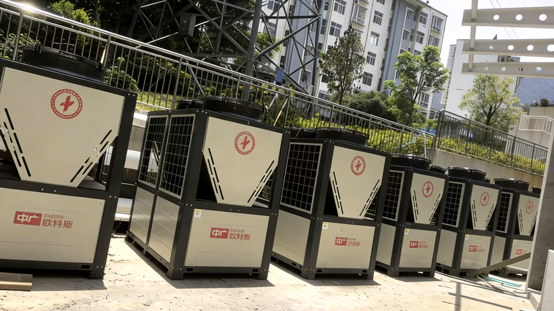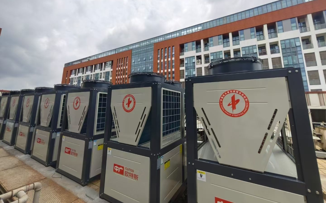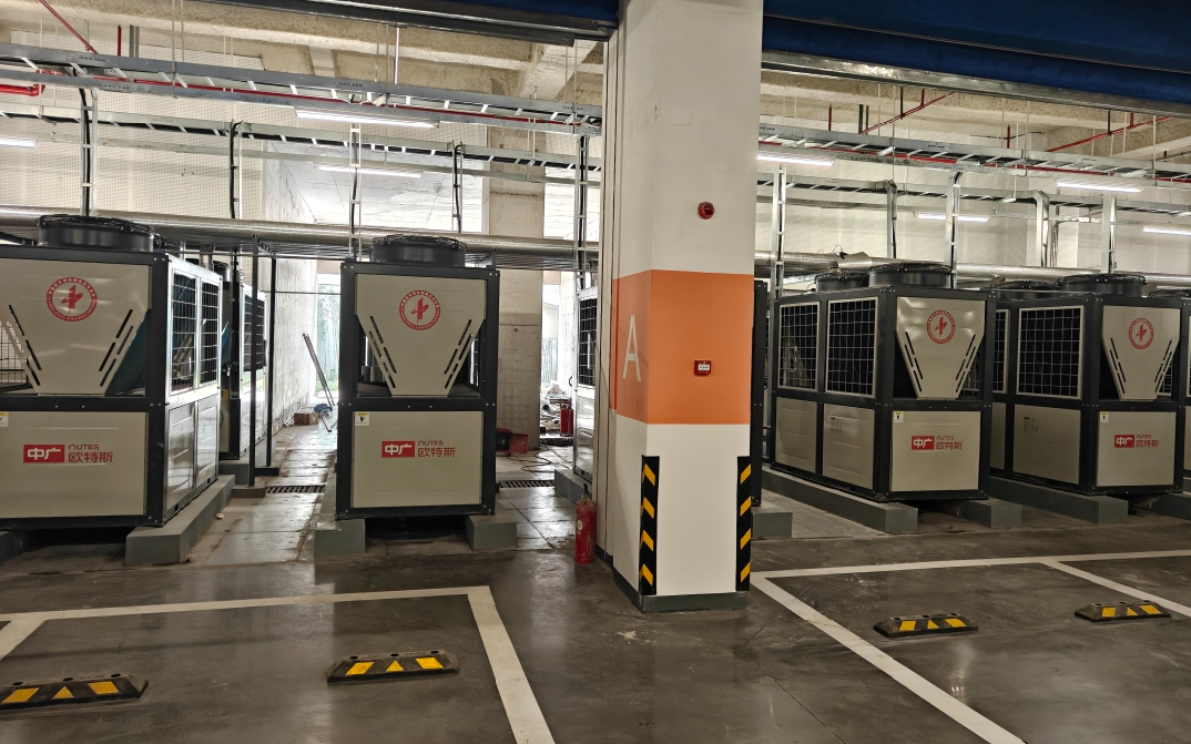 该项目位于广西省南宁市,2025年中广欧特斯为该项目配置了14台30HP、2台15HP以及2台5HP的热泵热水(又称“空气能热水”)机组,日供水量可达400吨,充分满足该单位用水需求。