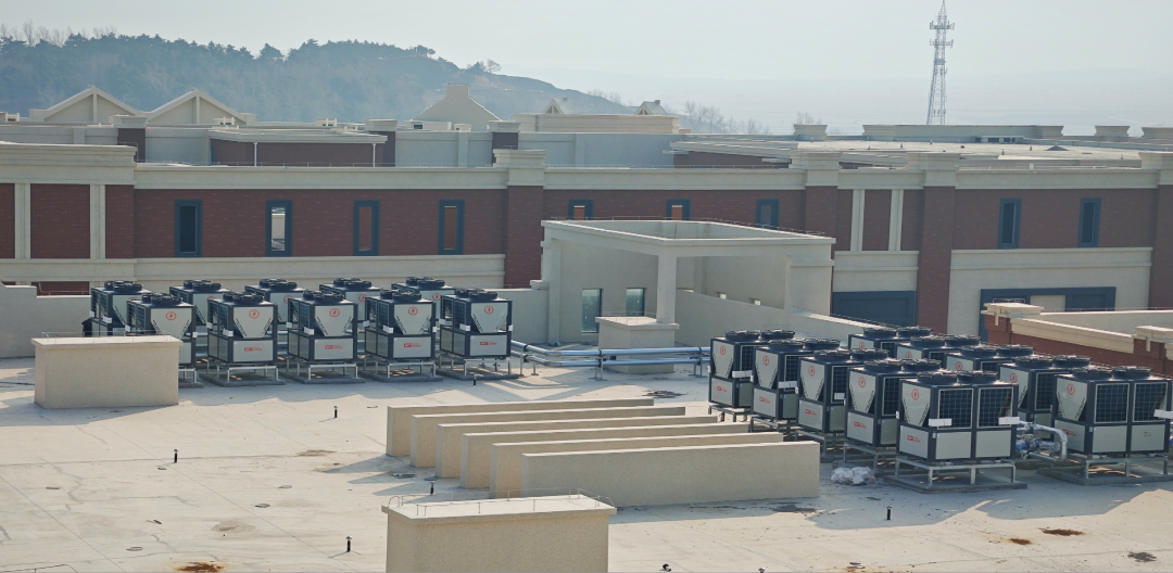 该项目位于江苏省连云港市,为集住宿、餐饮、会议、休闲为一体的五星级酒店。2025年中广欧特斯为连云港花果山大酒店、连云港金陵海州湾会议中心共配置了16台30HP、4台20HP商用热泵热水(又称“空气能热水”)机组,泳池循环加热,每日最大可供舒适热水300吨,并可提供洗衣房冷暖。