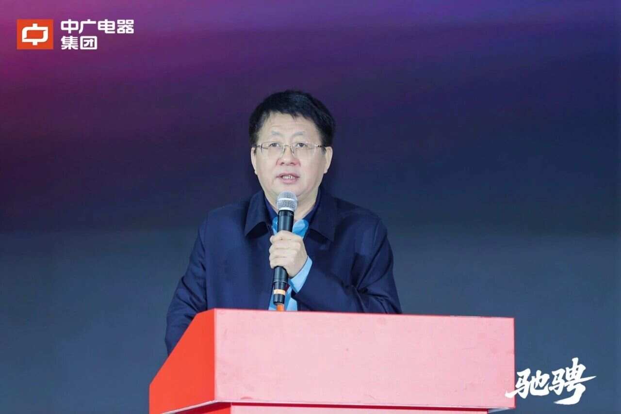 中广电器集团董事长朱建军作《驰骋》主题报告。朱建军首先对长期以来始终支持与关心中广的伙伴们致以真挚的感谢。他回顾了企业发展历程,明确根基稳健、发展向好,并结合行业发展数据指出当前市场处于“头部集聚、三足鼎立”的竞争格局,历经洗牌终将走向“头部引领、中小补位”的新格局。他认为,厚积者终将领航未来,中广电器非常有信心能够在“3+3”的格局中占据领先地位。