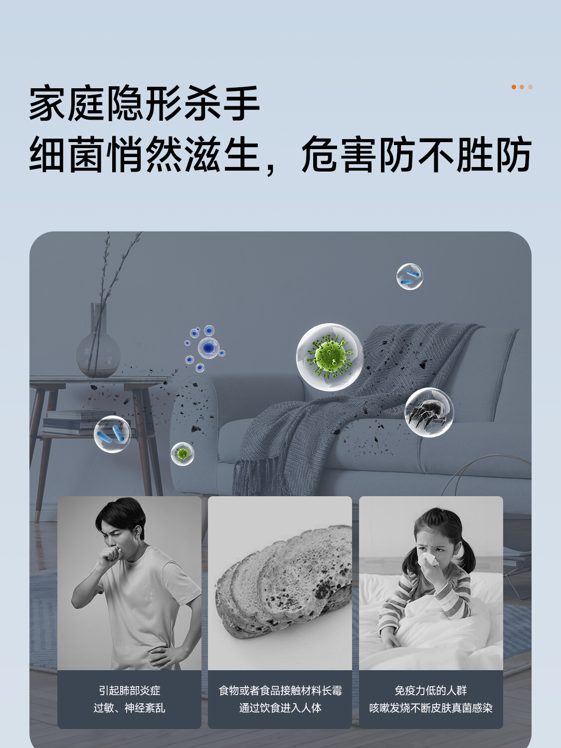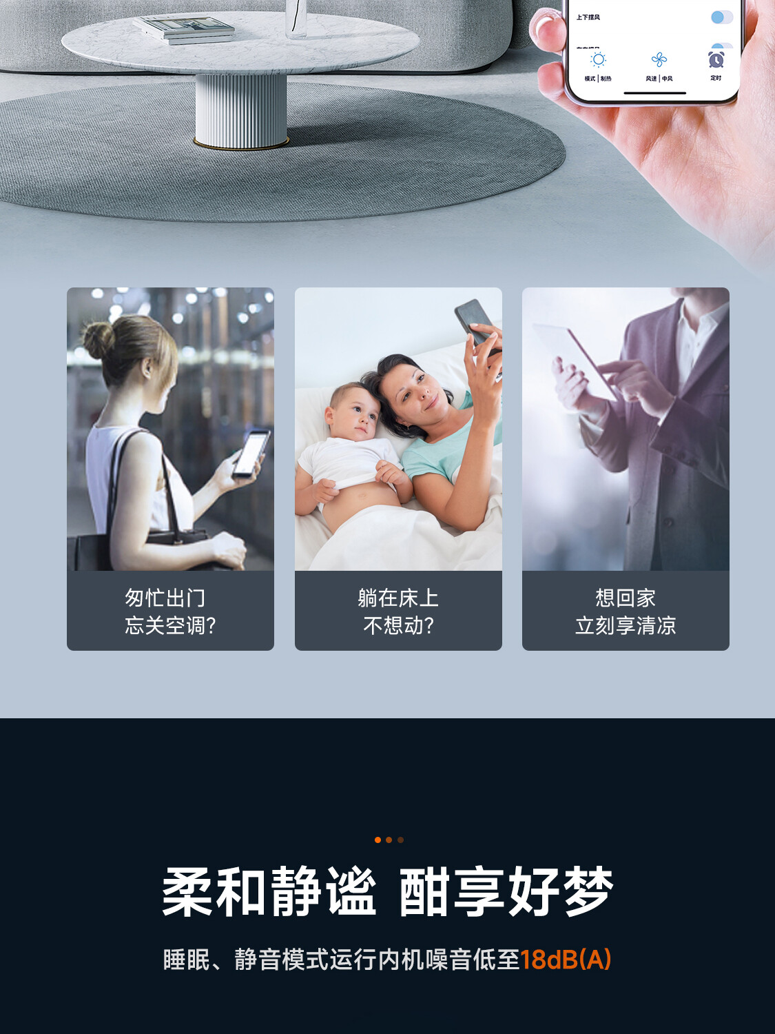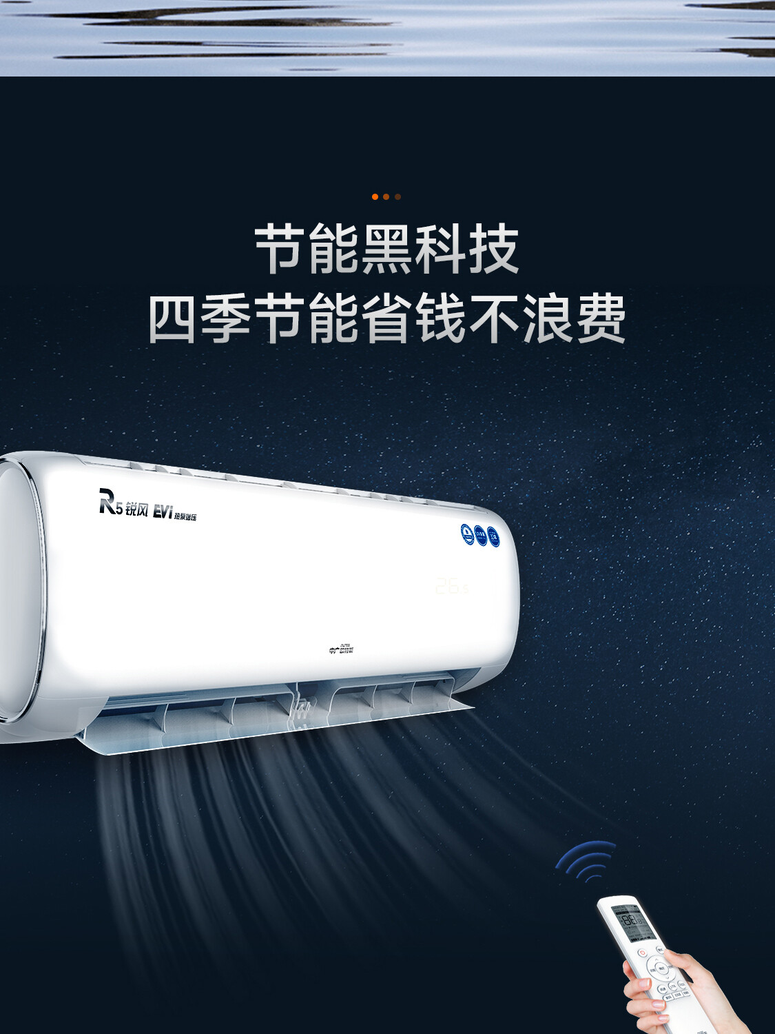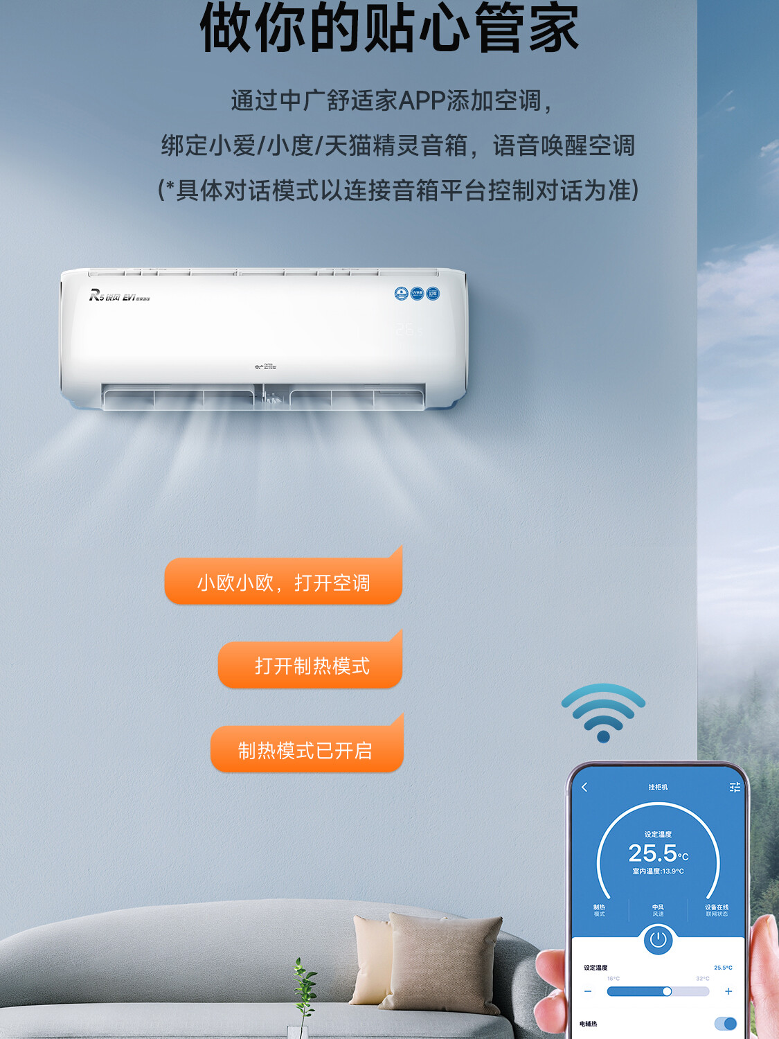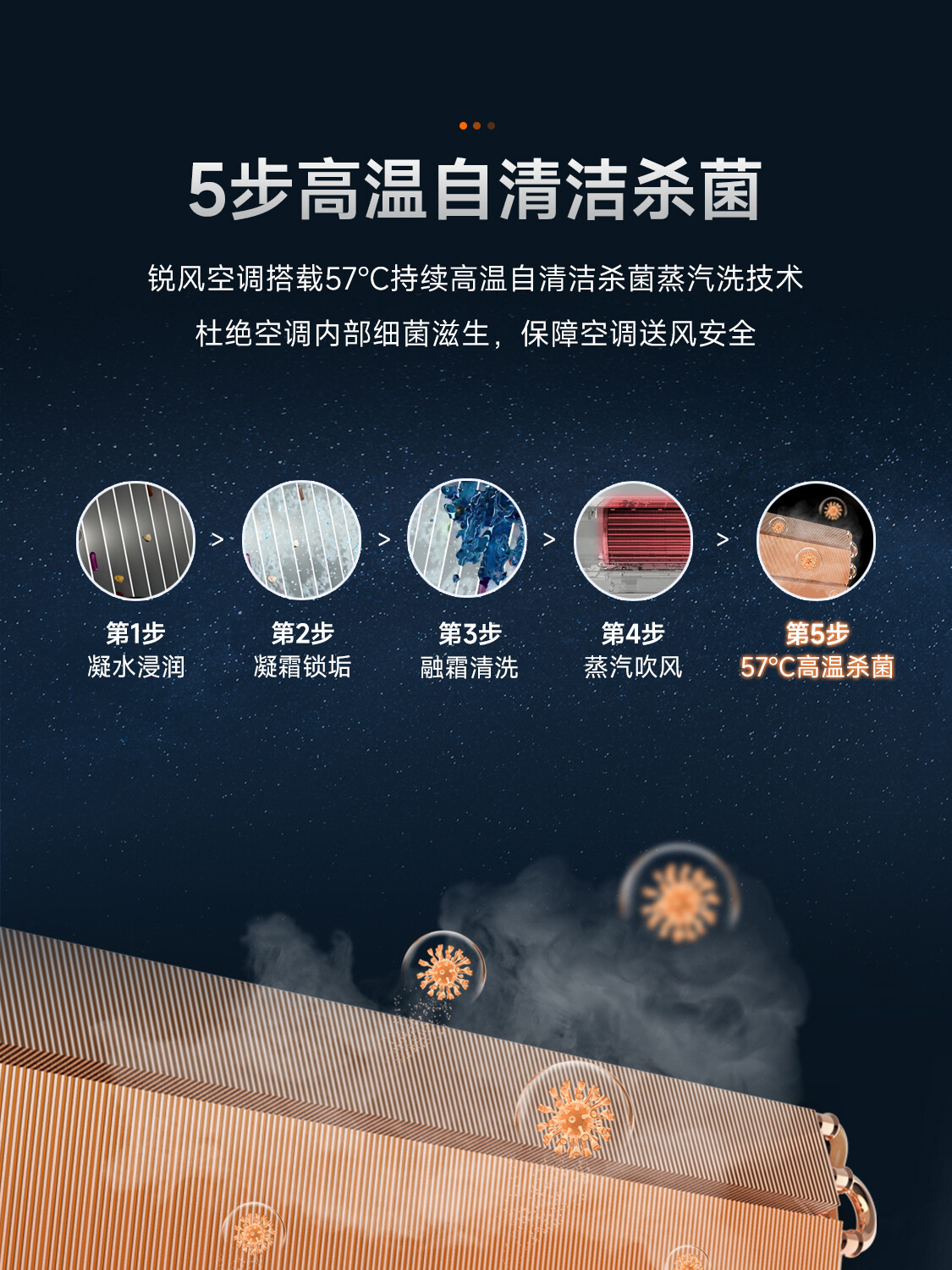 全直流变频丨新一代自清洁丨57℃高温杀菌丨新型除醛丨UVC杀菌丨独立除湿丨七档风速调节丨智能WiFi丨ECO节能丨睡眠模式